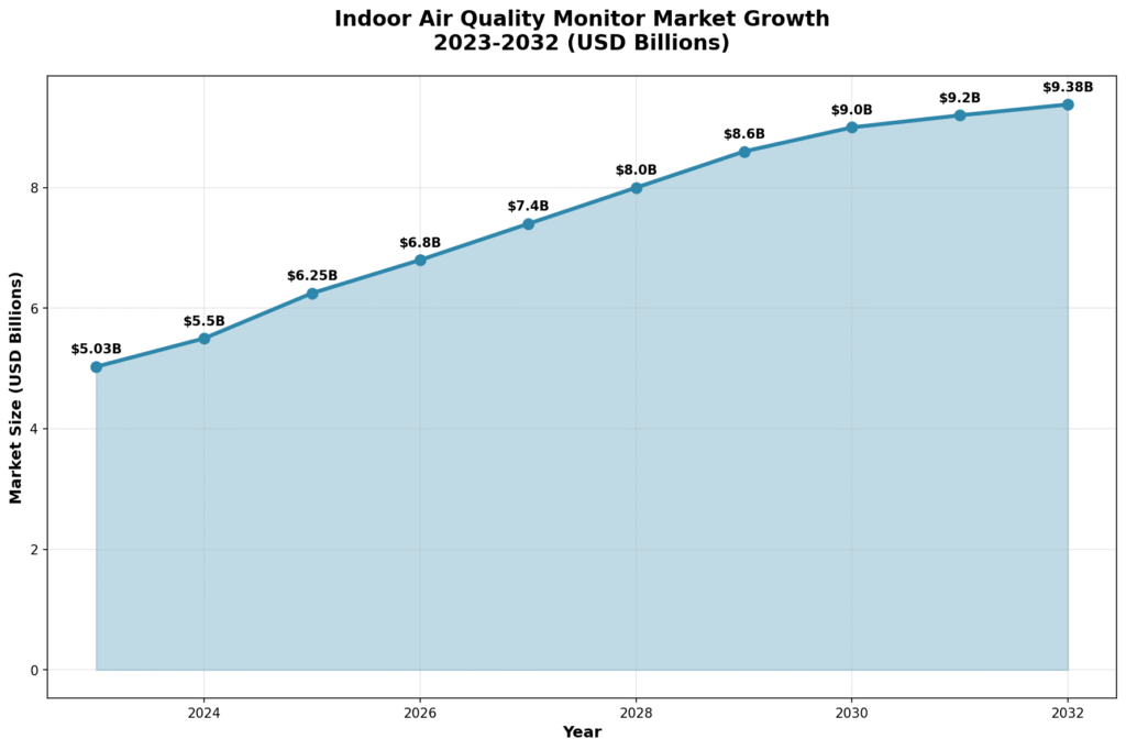 - The indoor air quality monitor market is expected to reach $9.38 billion by 2032, driven by increasing health awareness.