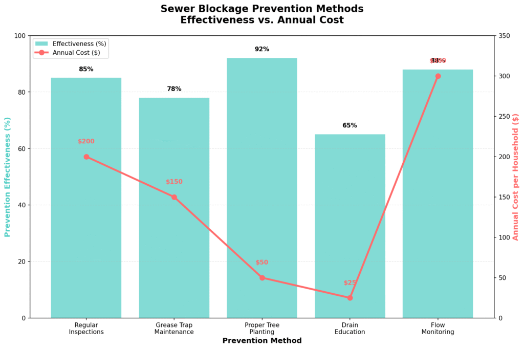 | Tree Root Intrusion | 25% | $300-$1,500 | Strategic tree planting, root barriers | Video inspection, acoustic sensors | Moderate to High |