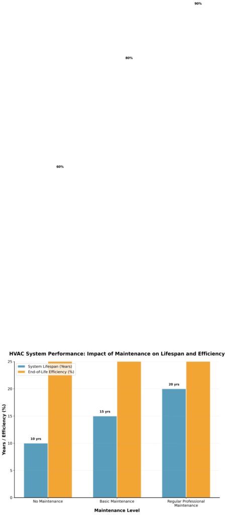 - A well-maintained HVAC system can last 15-20 years, while a neglected system may fail in as little as 10 years.