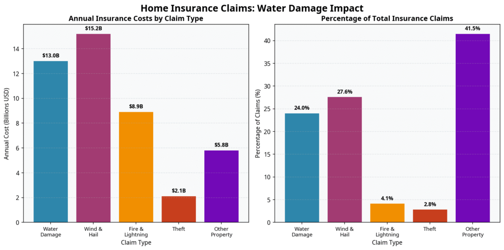 - Water damage is a significant financial risk for homeowners, with an average claim cost of nearly $14,000.