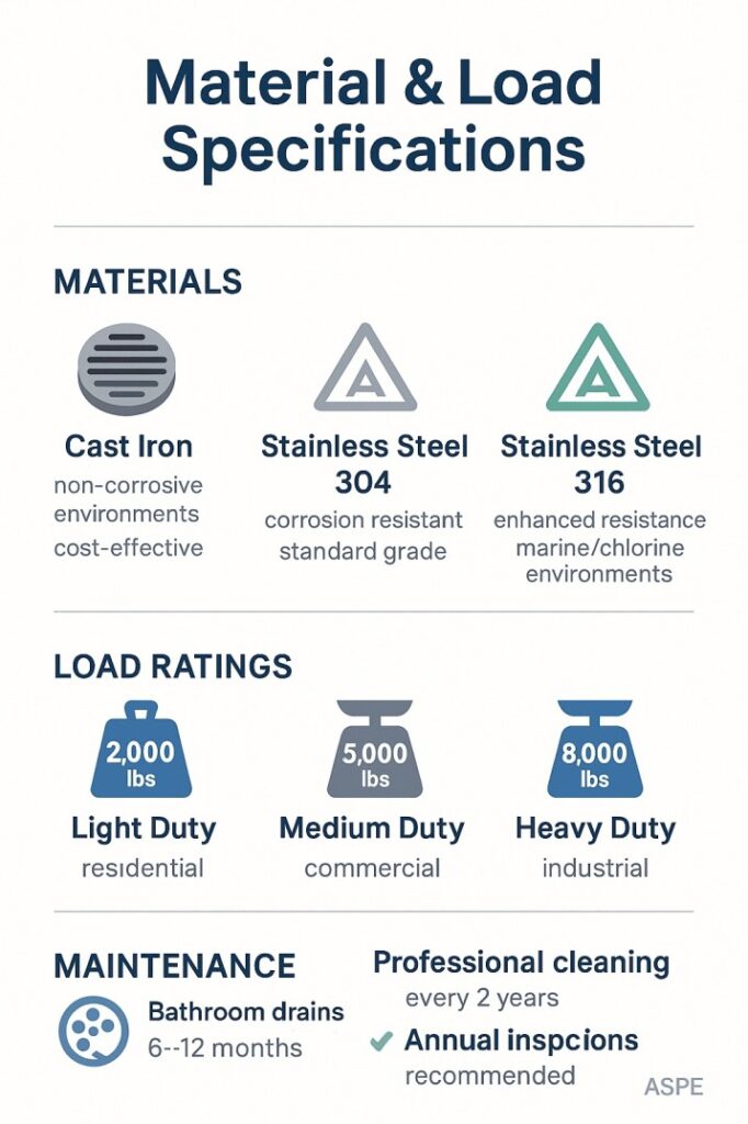 The durability and longevity of a shower drain cover are directly determined by its material composition and load-bearing capacity. Professional plumbing engineers, guided by standards from organizations like the American Society of Plumbing Engineers (ASPE), place significant emphasis on these technical specifications to ensure safety, performance, and compliance with building codes. This section delves into the critical aspects of material selection and load ratings, providing the necessary data to choose a drain cover that will withstand the test of time and the specific demands of your environment.