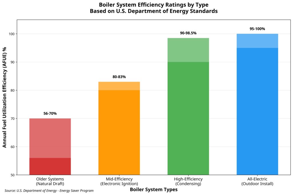 The decision to install or replace a boiler system extends far beyond a simple appliance purchase; it represents a significant long-term investment in a property’s infrastructure, directly impacting energy consumption, operational expenditures, and occupant comfort. In the United States, residential and commercial buildings account for approximately 40% of total energy consumption, with space heating representing the largest share of that energy use. Consequently, the efficiency of a heating system has a substantial effect on both utility bills and national energy demand. The U.S. Department of Energy (DOE) underscores the importance of high-efficiency heating systems, noting that upgrading from a 56% AFUE boiler to a 90% AFUE model can reduce carbon dioxide emissions by 1.5 tons annually for a natural gas system and 2.5 tons for an oil-fired system [1]. This highlights the critical role that boiler selection plays in achieving national energy and environmental goals.