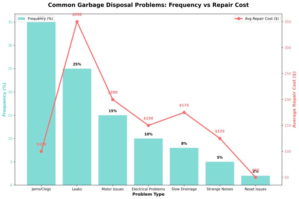 Based on industry data and plumber feedback, the most common garbage disposal problems can be categorized as follows: jams and clogs (35%), leaks (25%), motor issues (15%), electrical problems (10%), slow drainage (8%), strange noises (5%), and reset issues (2%). Jams and clogs are by far the most frequent issue, often caused by overloading the unit or attempting to grind inappropriate materials. Leaks are also a common problem, typically resulting from worn-out seals or loose connections. Motor and electrical issues are less frequent but can be more serious and often require professional attention.