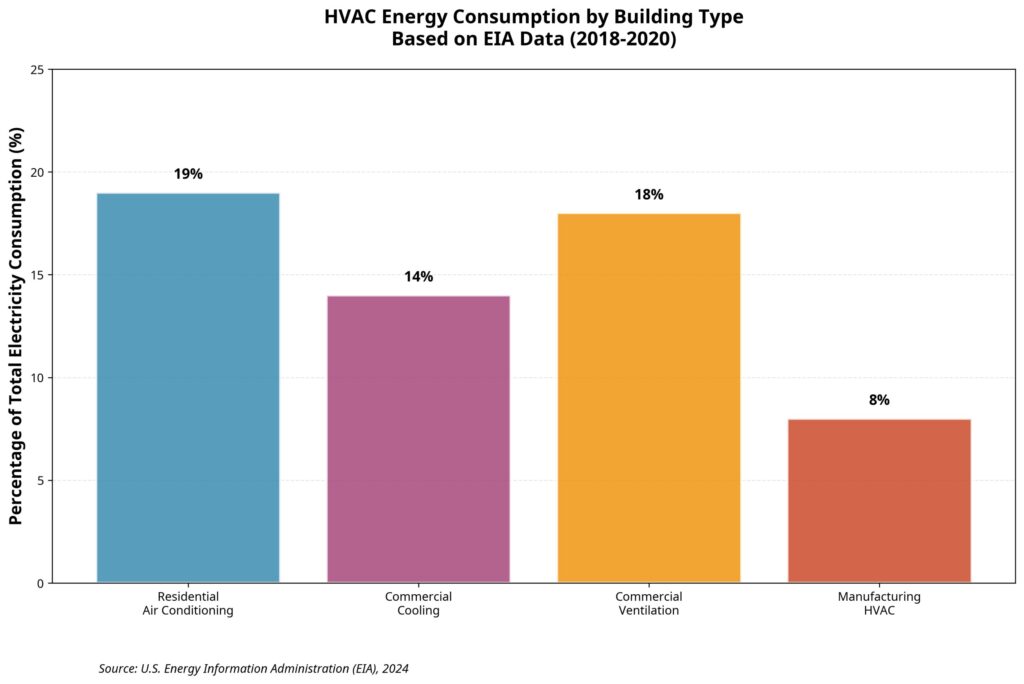 The data from the U.S. Energy Information Administration (EIA) clearly illustrates the significant impact of HVAC systems on overall energy consumption. As shown in the chart below, air conditioning alone accounts for 19% of electricity use in residential buildings. In commercial buildings, cooling and ventilation combine to represent 32% of electricity consumption. These figures underscore the immense potential for energy savings through the adoption of high-efficiency HVAC technologies in condominiums.