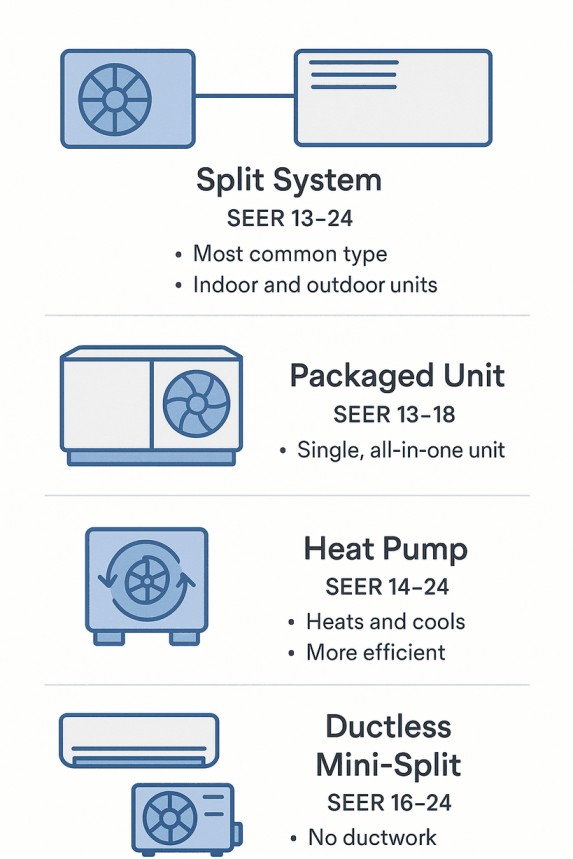 System Type,Min SEER,Max SEER,Typical SEER