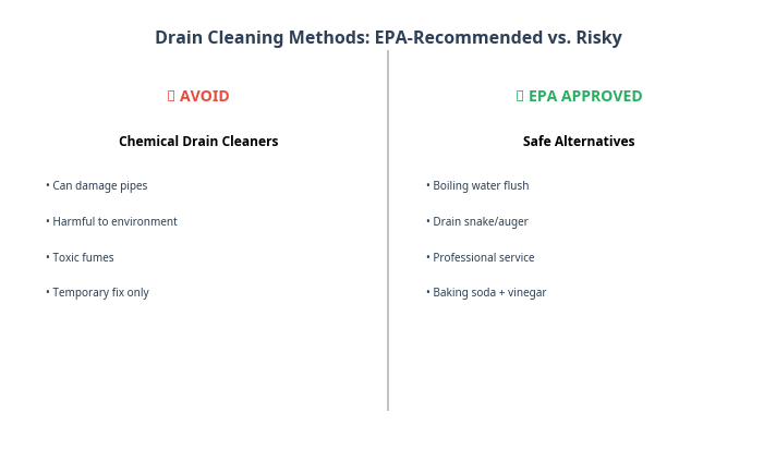 - Avoid Chemical Cleaners: The EPA and plumbing professionals agree that chemical drain cleaners are a risky choice. They can damage your pipes, harm the environment, and are often ineffective for severe clogs.