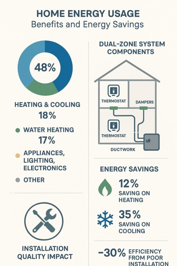 - Significant Energy Savings: Dual HVAC systems can reduce heating energy use by over 10% and cooling energy use by over 35% [2].