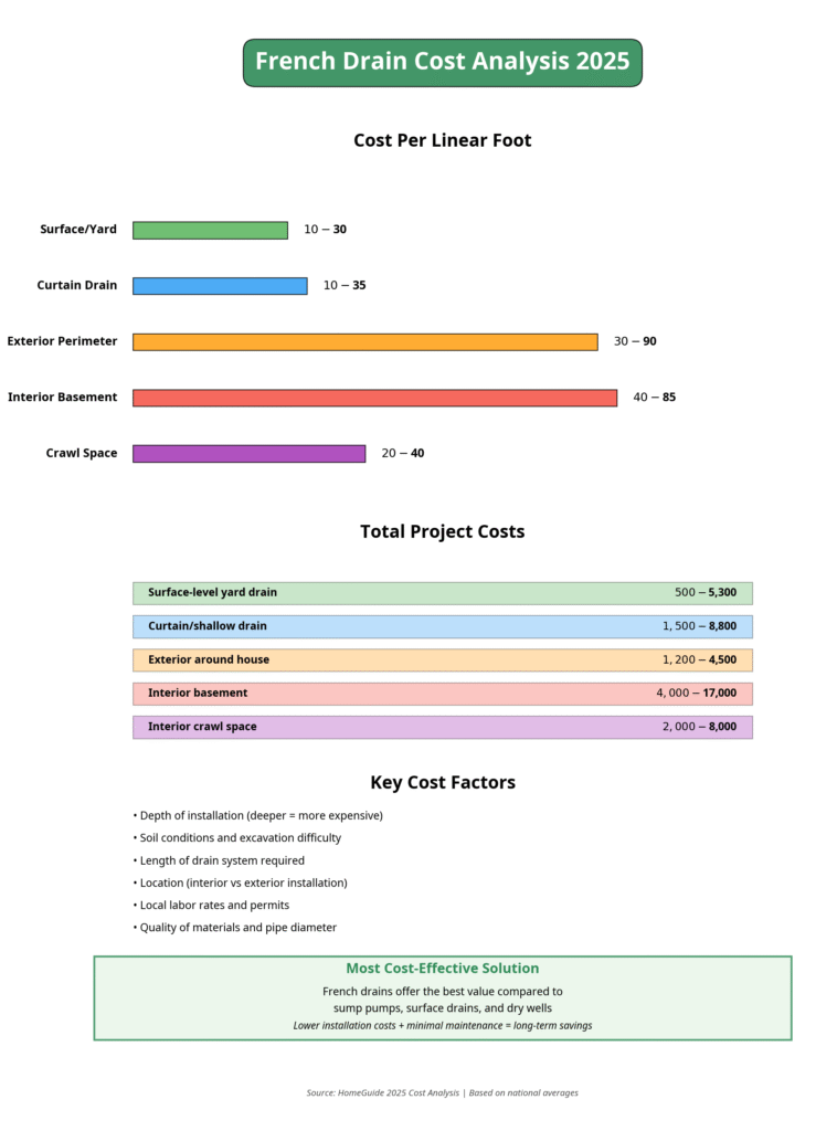 - HomeGuide. (2024, September 13). How Much Does a French Drain Cost? (2025 Prices).