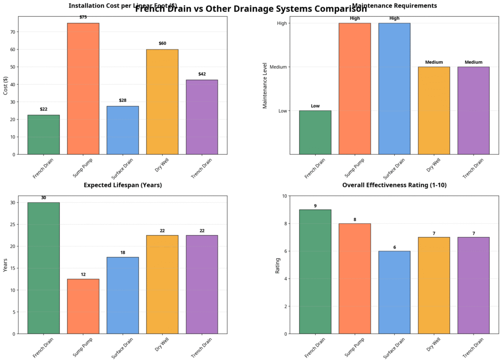 - SoFranko Contracting. (2025, March 14). The Cost-Effectiveness of Installing French Drains vs. Other Drainage Solutions.