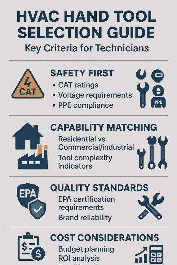 Strategic HVAC tool selection requires balancing multiple factors including safety requirements, regulatory compliance, capability needs, and economic considerations. The following key principles guide effective tool acquisition and utilization strategies for HVAC professionals at all career stages.