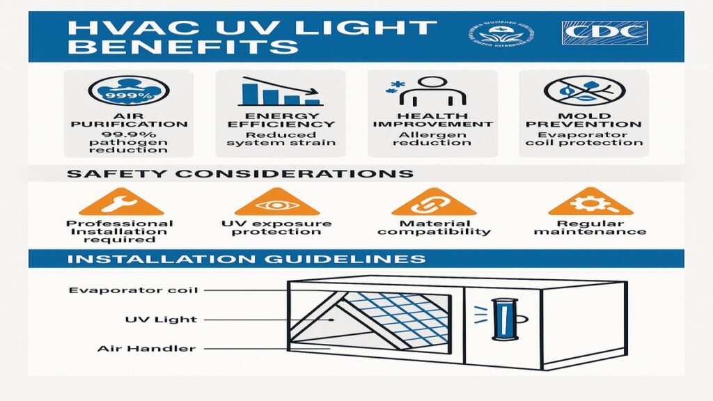 This comprehensive analysis examines the technical specifications, installation methodologies, safety protocols, and performance metrics of HVAC UV light systems, drawing from authoritative sources including the Environmental Protection Agency (EPA), Centers for Disease Control and Prevention (CDC), American Society of Heating, Refrigerating and Air-Conditioning Engineers (ASHRAE), and peer-reviewed academic research. The evidence demonstrates that properly installed UV-C systems can provide substantial improvements in indoor air quality while offering measurable energy efficiency benefits, though implementation requires careful consideration of placement, safety protocols, and ongoing maintenance requirements.