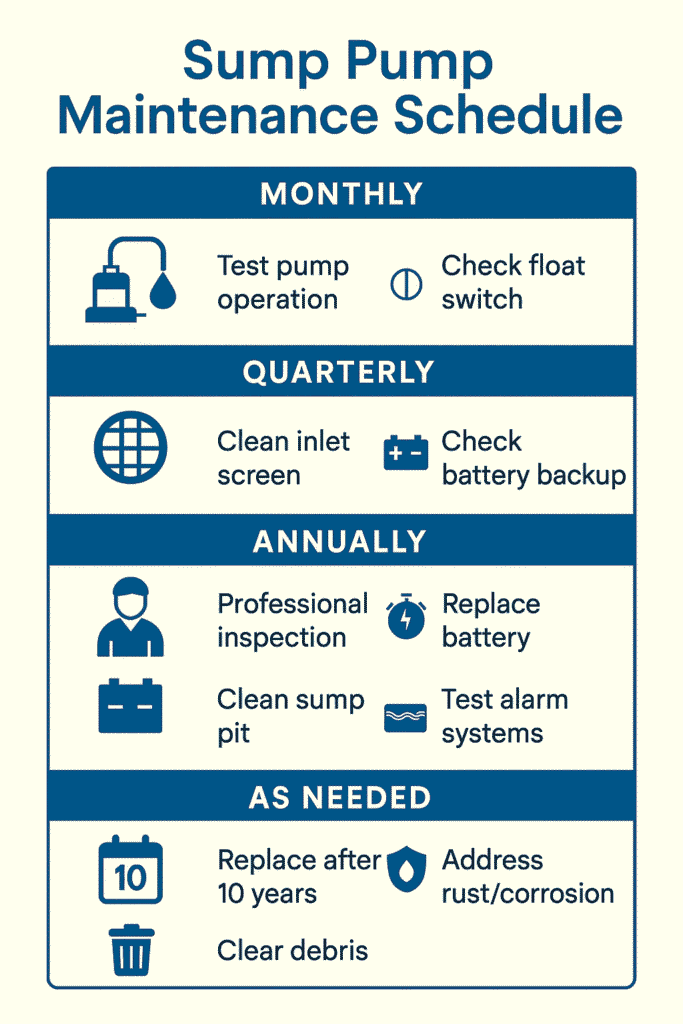 Monthly testing protocols provide the most cost-effective failure prevention strategy, enabling early detection of developing problems while ensuring homeowner familiarity with normal system operation. The simple process of pouring water into the sump pit monthly can prevent the majority of preventable failures while building confidence in system reliability.